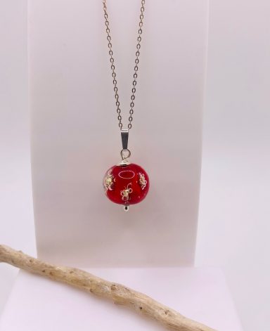 Une perle de verre de Murano façonnée artisanalement et montée, avec soin, sur une chaîne en argent 925 ou dorée.