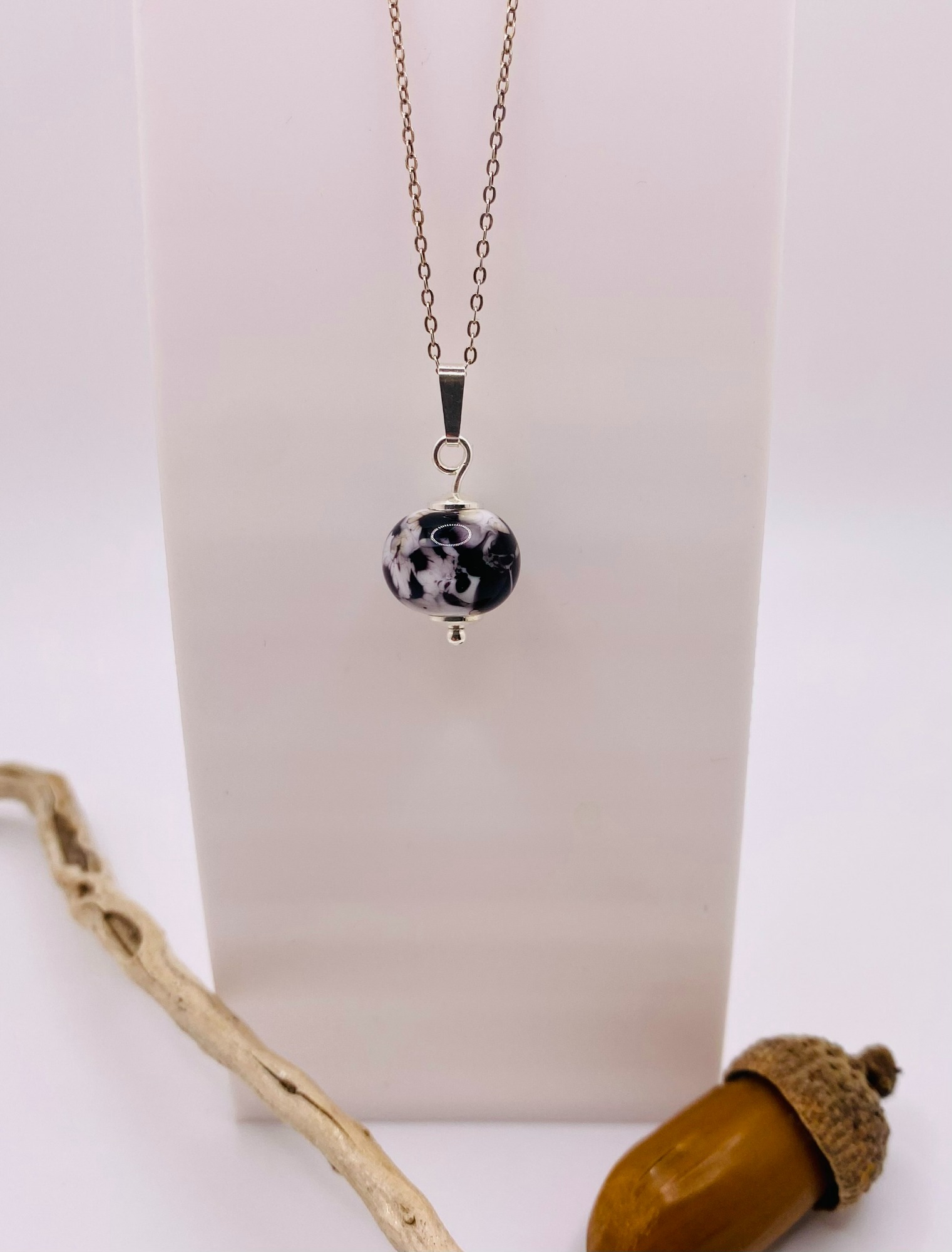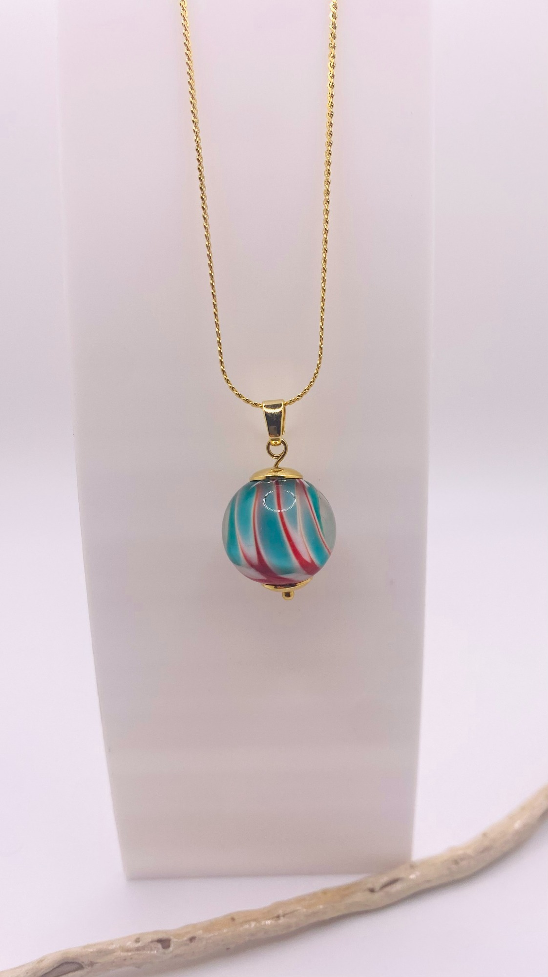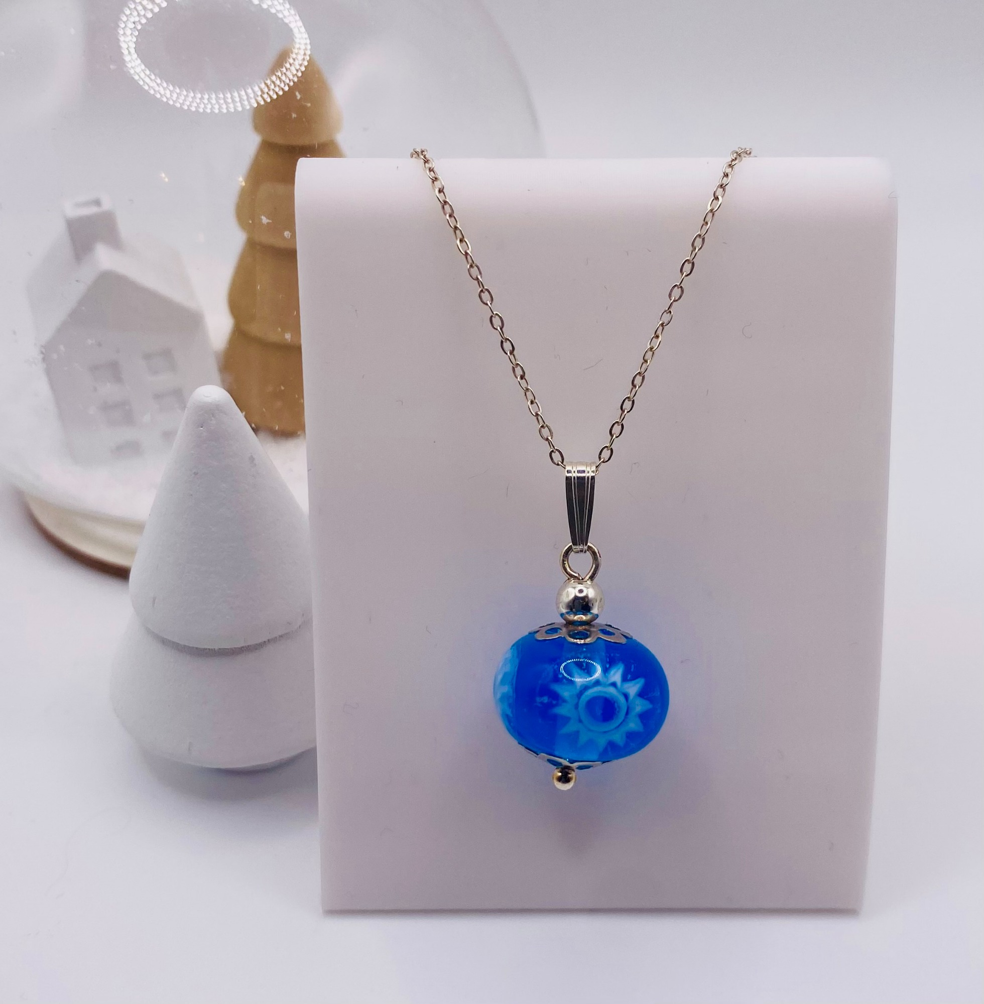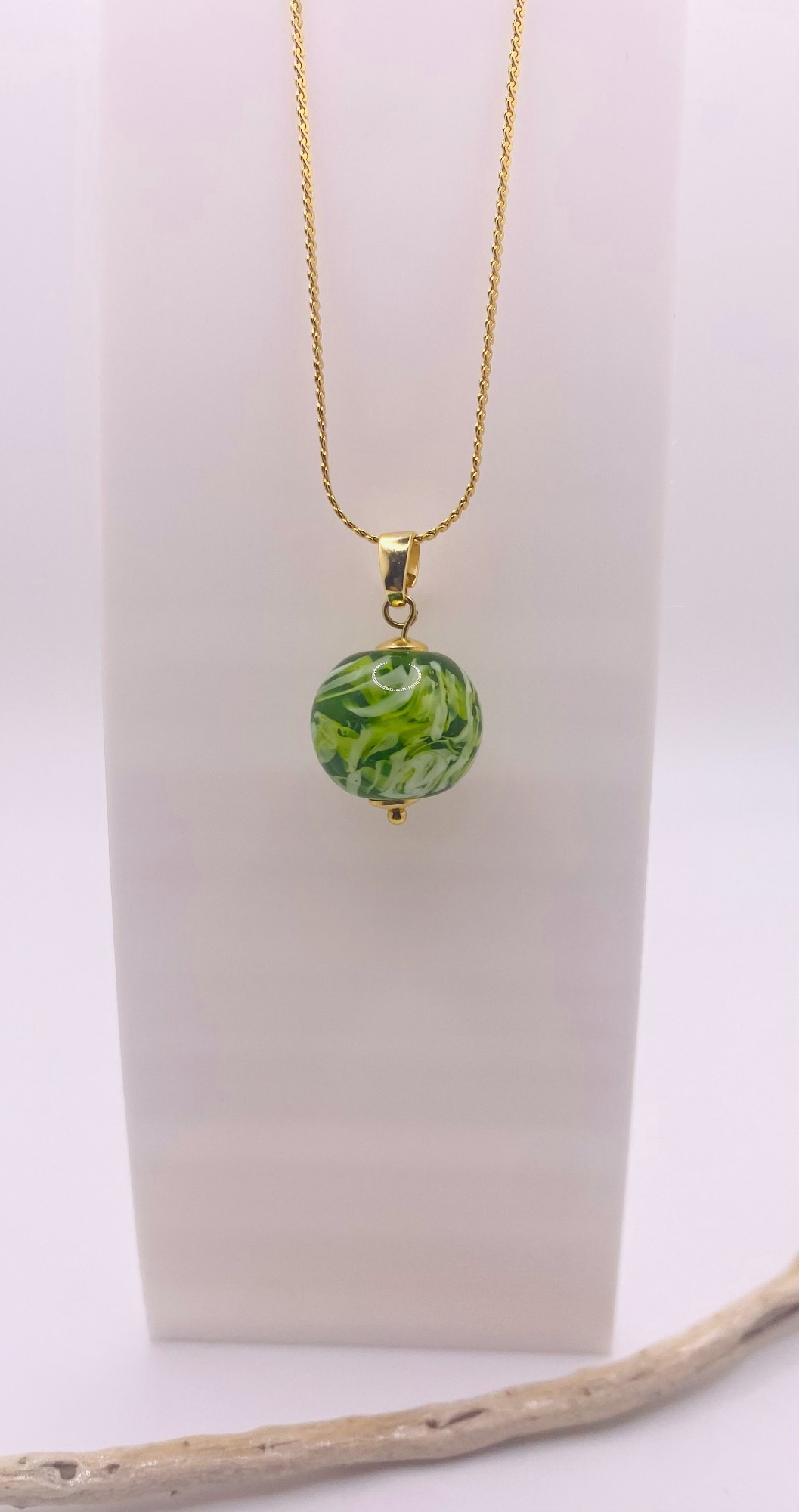 Une perle de verre de Murano façonnée artisanalement et montée, avec soin, sur une chaîne en argent 925 ou dorée.