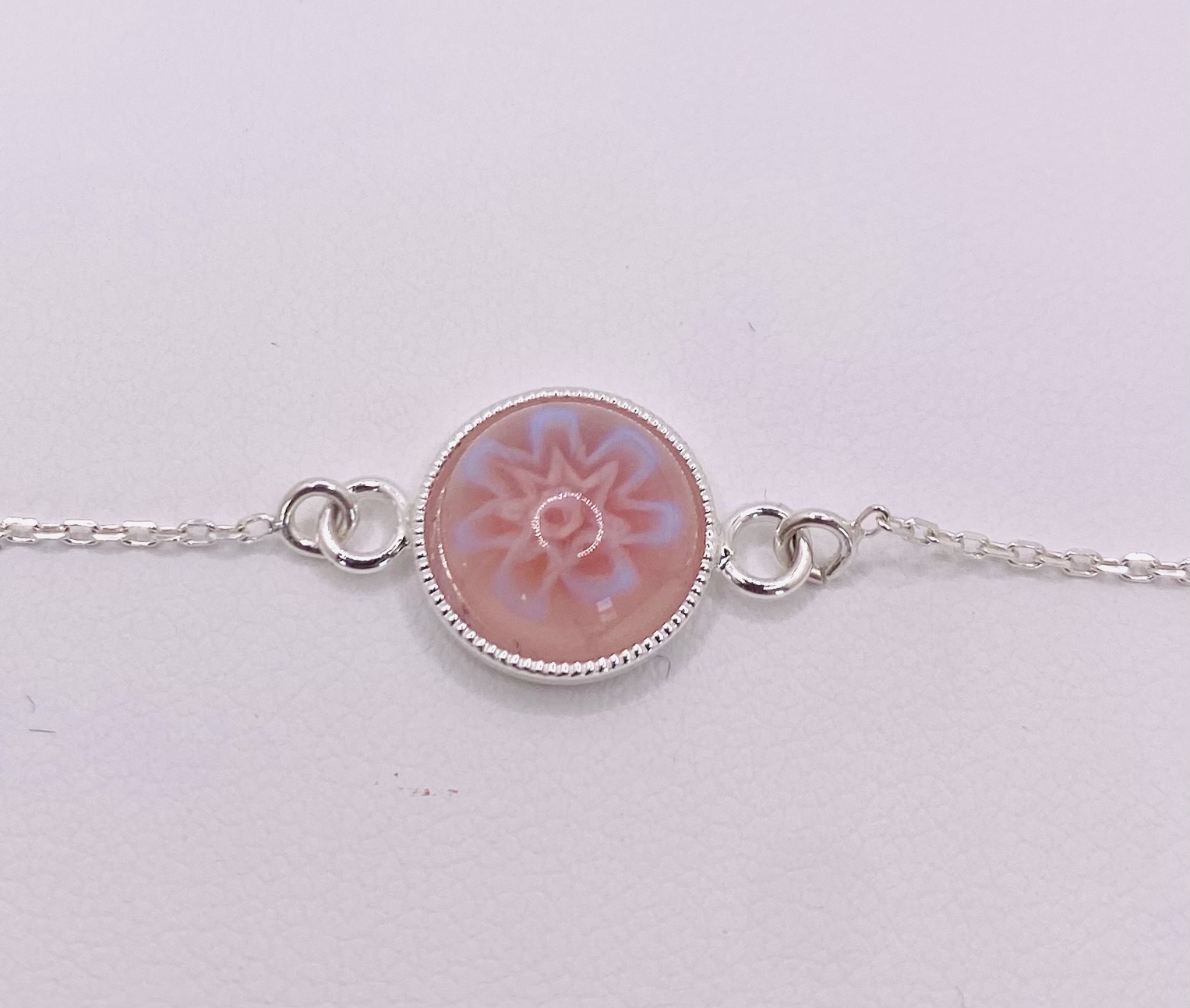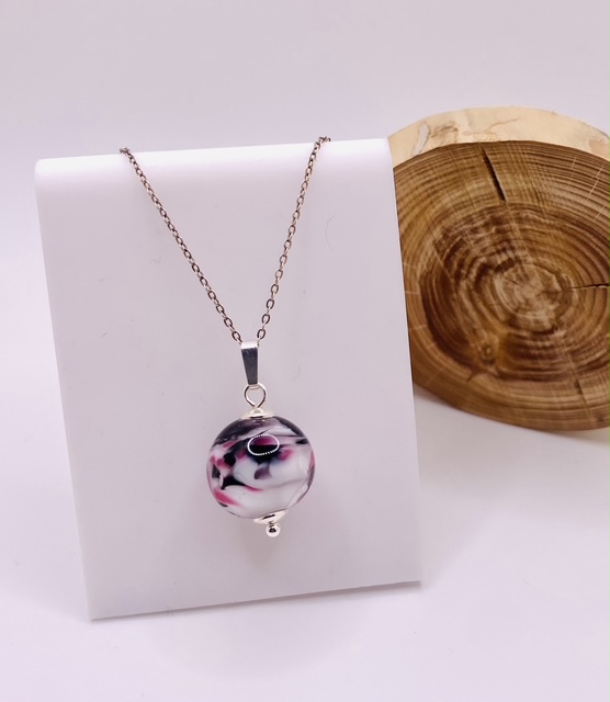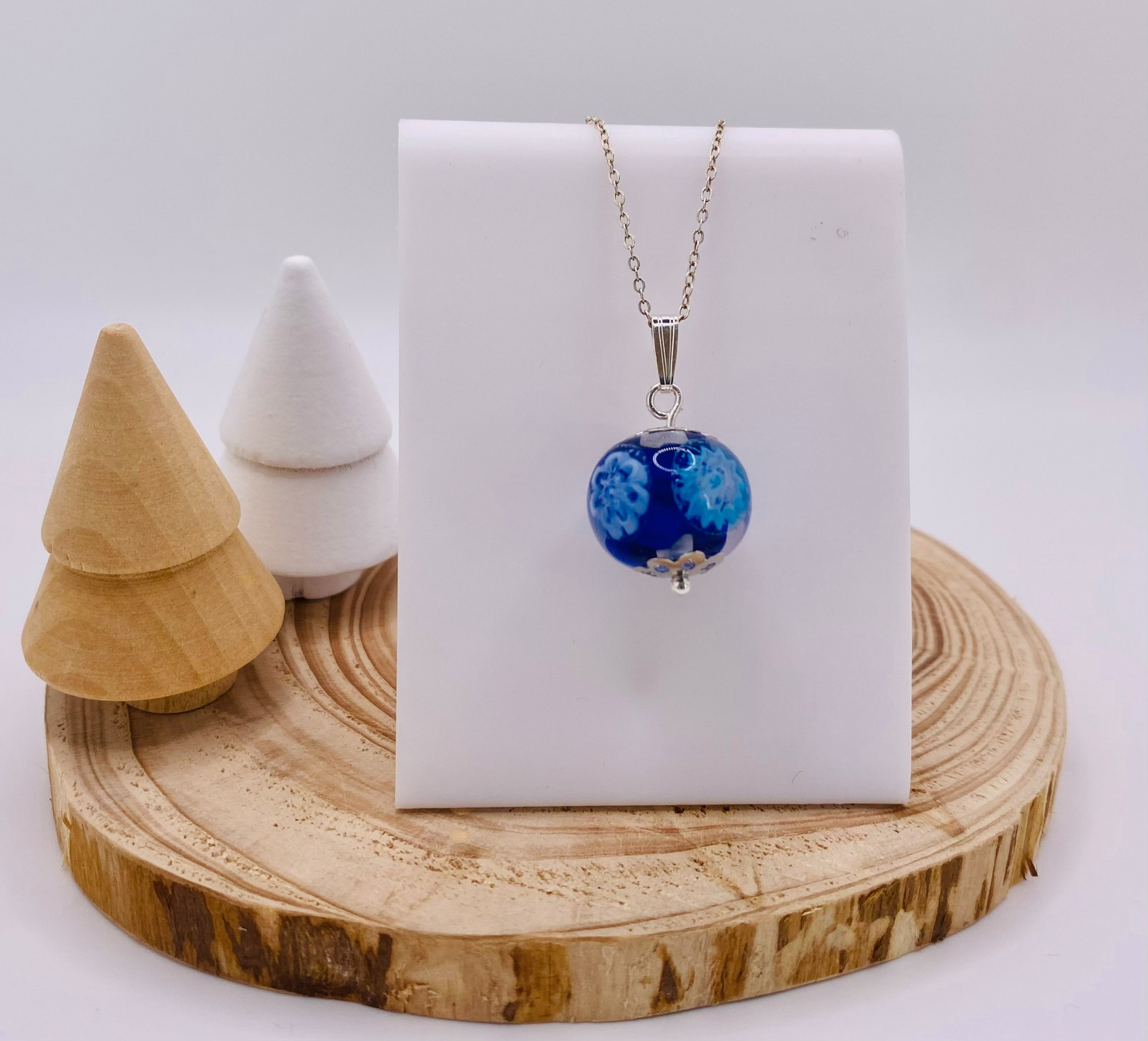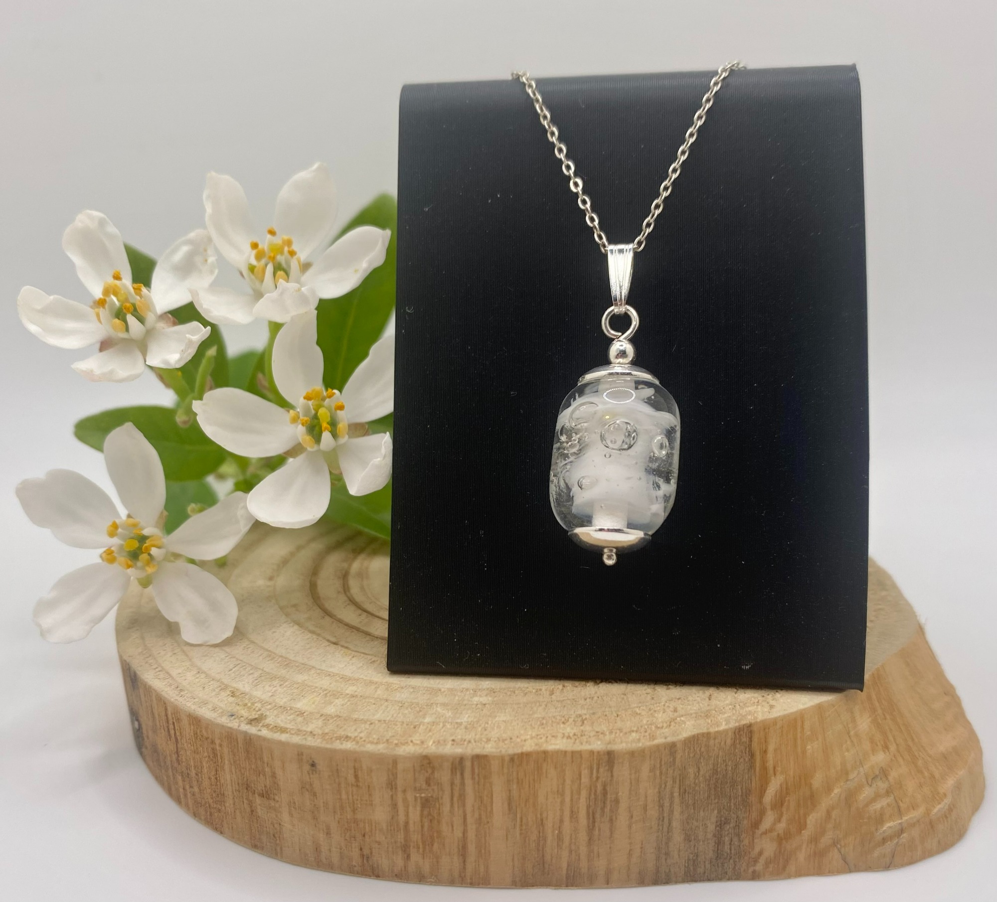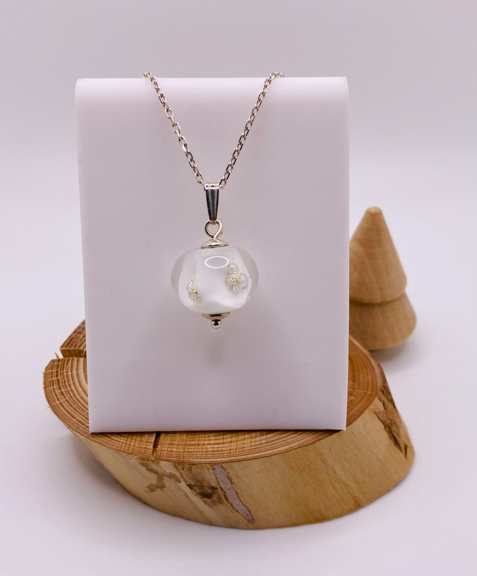 Une perle de verre de Murano façonnée artisanalement et montée, avec soin, sur une chaîne en argent 925 ou dorée.