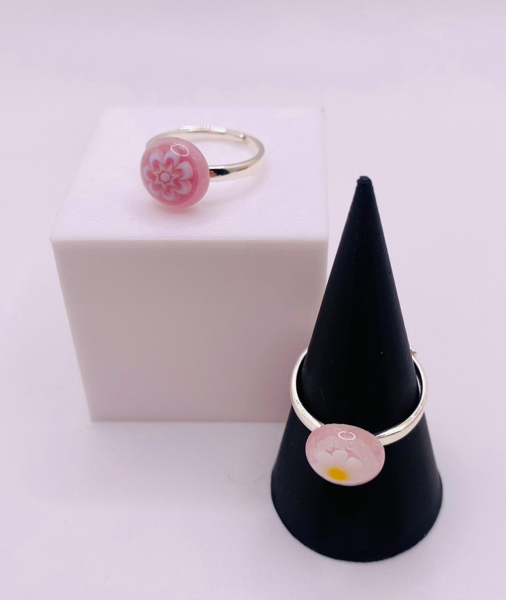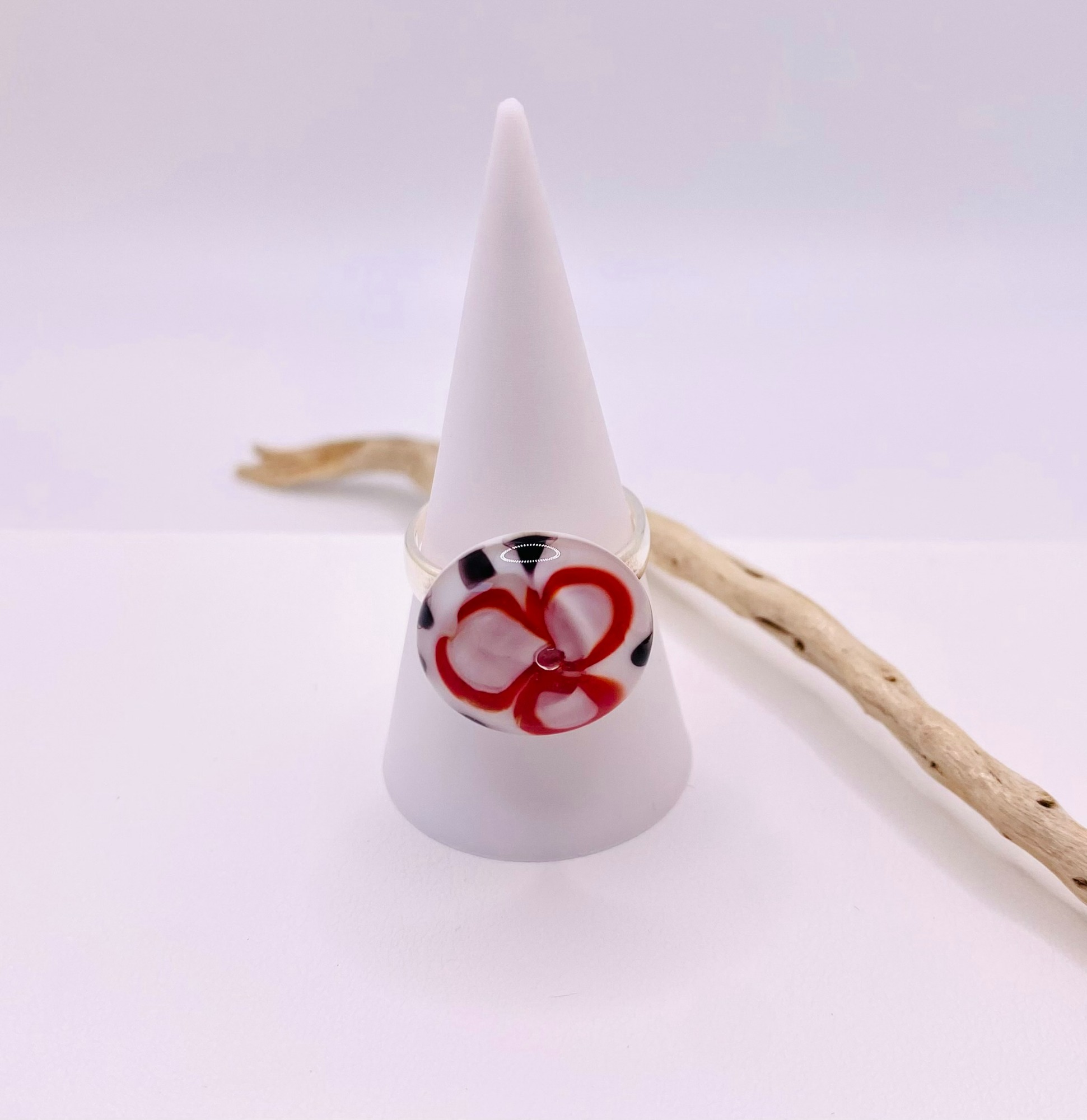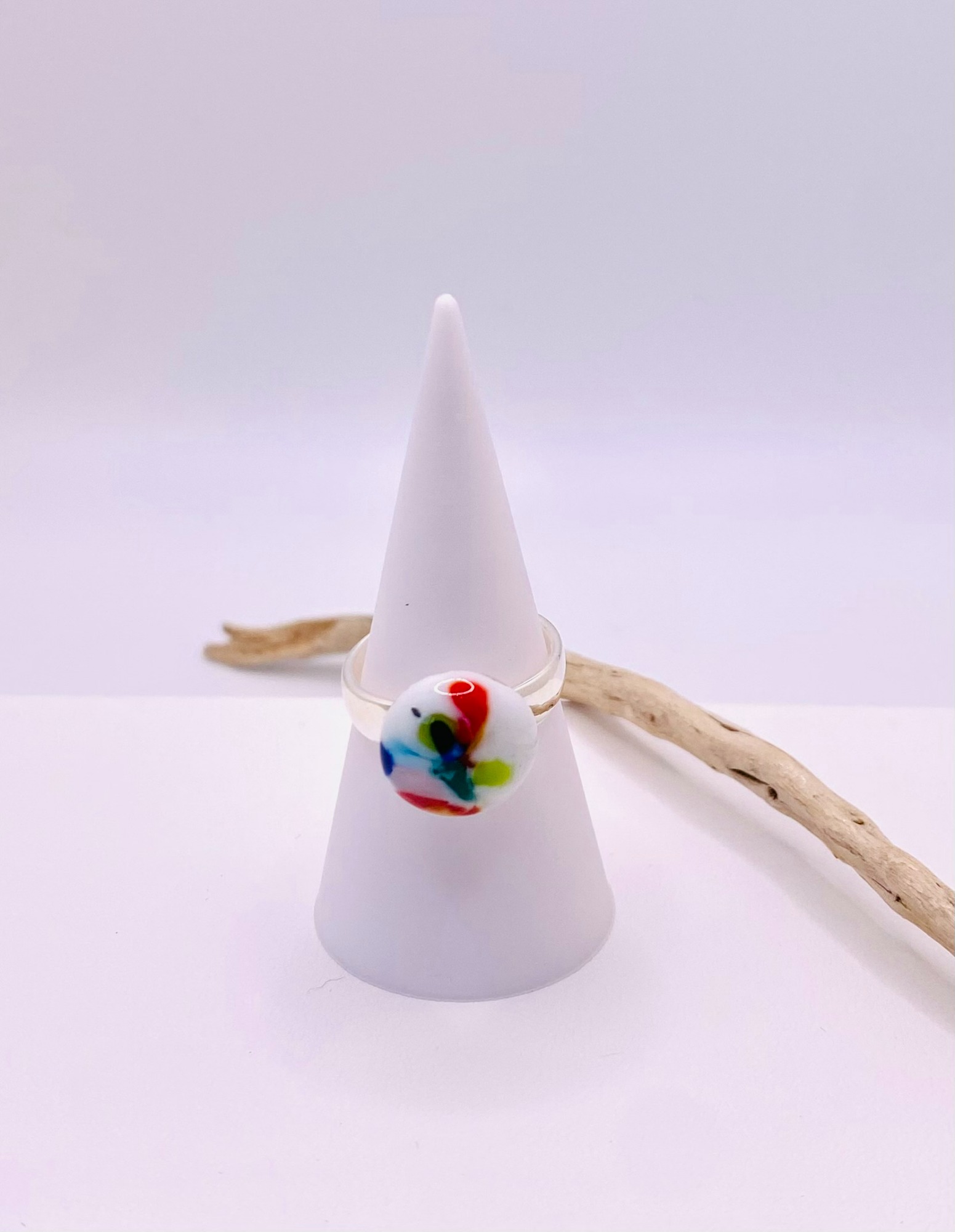 Les couleurs du verre de Murano, la diversité des décors (points, fils, bulles d'air) font de mes bagues des pièces uniques.