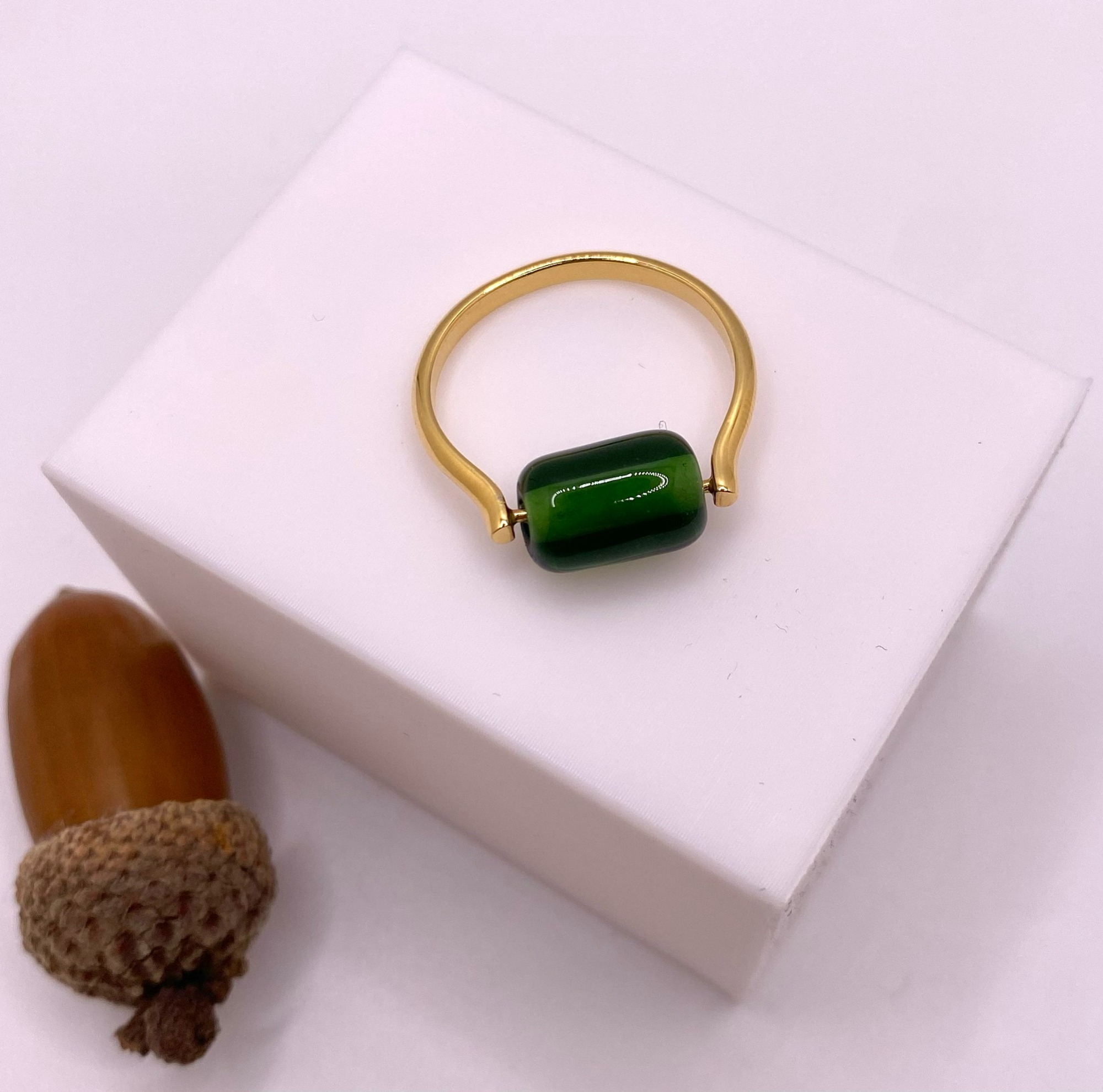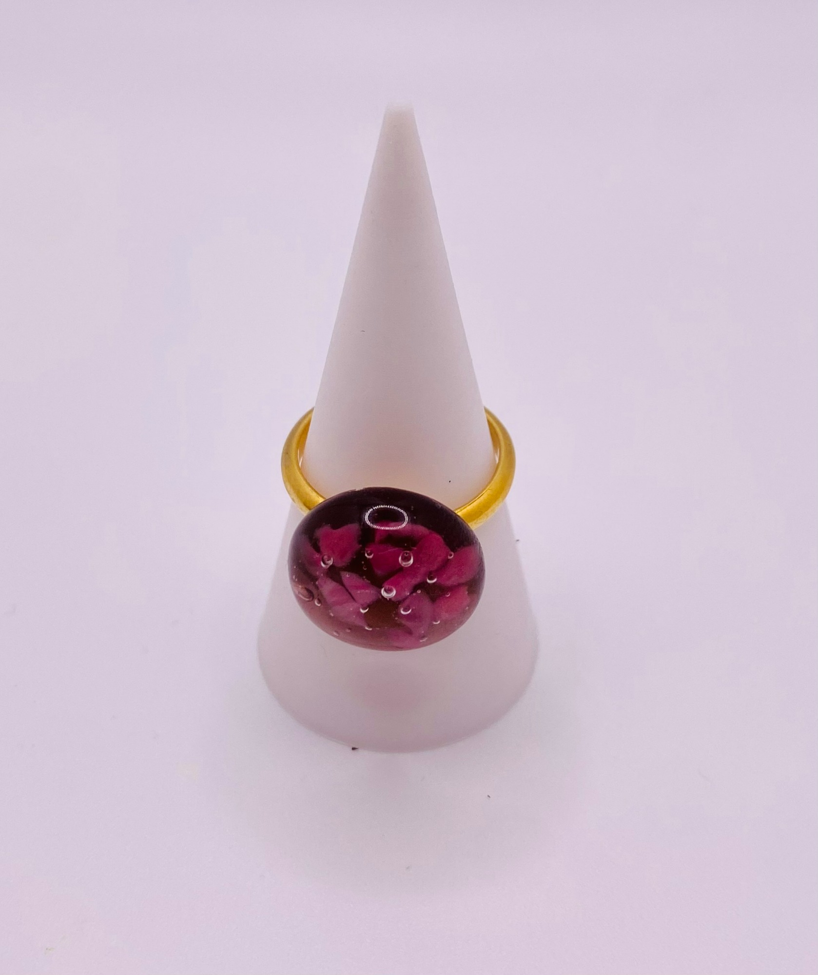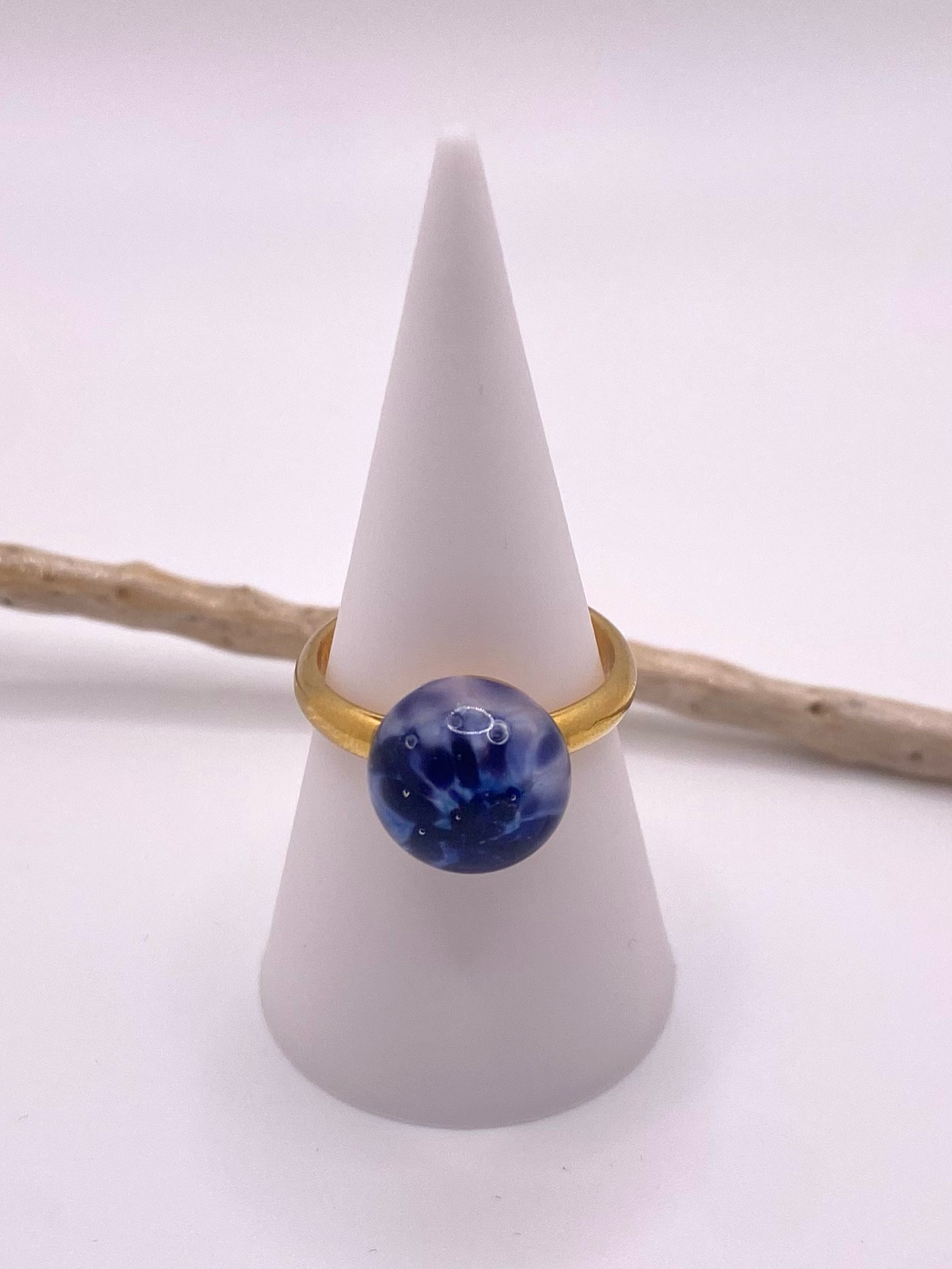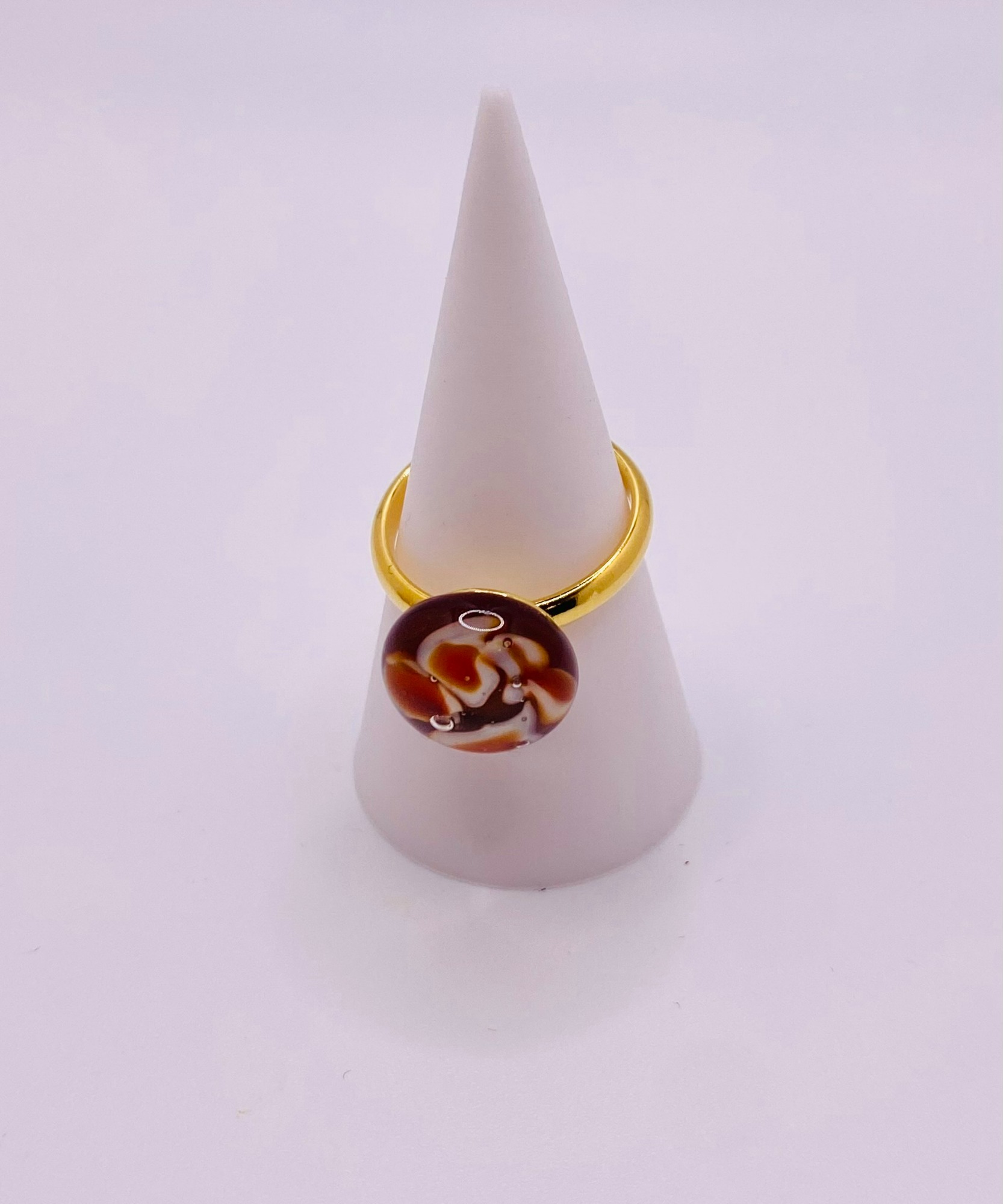 Les couleurs du verre de Murano, la diversité des décors (points, fils, bulles d'air) font de mes bagues des pièces uniques.