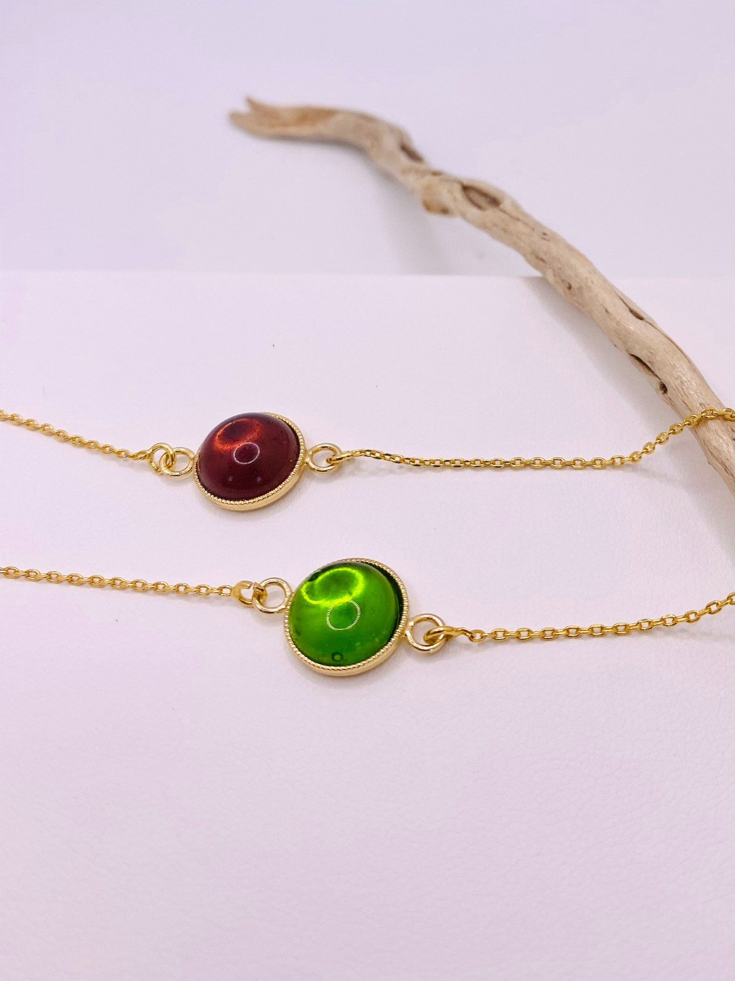 Pour plus de sobriété, j'associe une petite perle en verre de Murano, façonnée sous forme de "cabochon", à une chaîne en argent ou dorée.